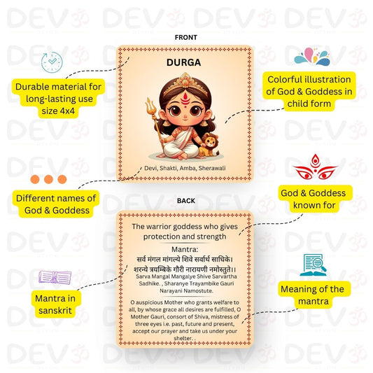 God and Goddess Cards with Mantra, Non Tearable , High Quality, Kids Memory Card Learning, Pack of 15 cards